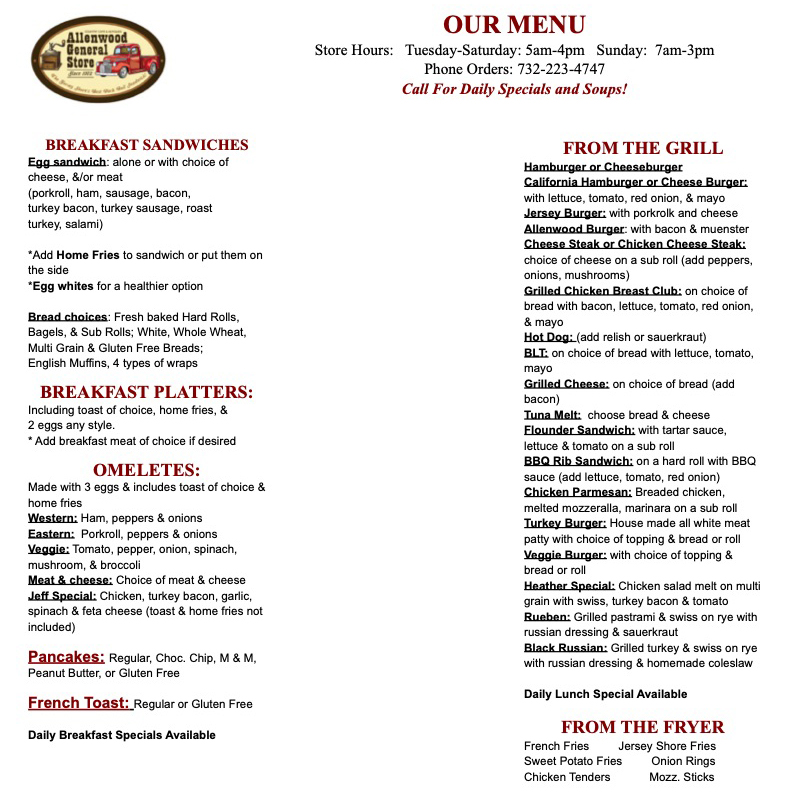 At the center of the sleepy cross-roads, 17th century village of Wall, New Jersey, known as Allenwood sits the Allenwood General Store.